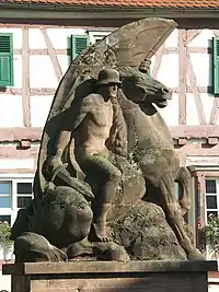 Even nowadays the forests and sandstone rocks surrounding Dahn give fantastic Lebensraum to the fabulous Elwetritsche. To honour the excellent relation between inhabitants of Dahn and Elwetritsche there is an Elwetritsche lecture trail, an Elwetritsche hiking trail as well as Elwetritsche fountains and further memorials.