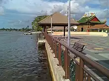 Dalat town also has a post office, district office, a hospital, a stadium (Stadium Perpaduan Dalat), a few blocks of shop-houses, a Catholic church (St. Bernard Church), a Methodist Church, a Chinese temple (age more than a century), a district mosque and a Senior Citizens’ Activity Centre (PAWE).[15] In June 2017, a voluntary fire station was launched. The fire station is an interim measure to respond swiftly to fires as the nearest facility is in Mukah, some 40 minutes’ drive away.[16] In December 2020,'Bazaarnita Fatima' and Phase 2 of Dalat Waterfront were officially opened by the Chief Minister of Sarawak, Datuk Patinggi Abang Abdul Rahman Johari bin Al-Marhum Tun Abang Haji Openg.[17]