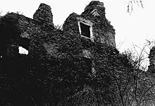 - Dalberg castle ruin[10] – preserved from the complex founded about 1150 and destroyed in parts in 1635 or 1689: Romanesque keep, residential quarters, dwelling building, "Long Hall", 14th century, former Saint Anthony's Chapel (Antoniuskapelle) with corner tower, "Dietherbau" with "Dietherturm" (tower), before 1371 and before 1398; two columns of a waterpipe.