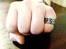 Rings are available with a wide or narrow band, in 14k white and yellow gold or in stainless steel.[19]