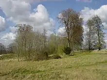 Danebury Hill, on top of which the hillfort sits, rises to 143 m (469 ft). The hillfort dominates the local landscape, which rarely rises above 100 m (330 ft), and has commanding views of the area. The surrounding country has light soil that would have been easily cultivated. Territory commanded by Danebury included areas of forest, pasture in the uplands, and access to water sources in the form of the River Test.[30] To the west runs Wallop Brook which flows south east into the River Test.[31]