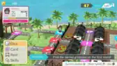 Danganronpa S: Ultimate Summer Camp is an expanded version of the Ultimate Talent Development Plan and Despair Dungeon: Monokuma's Test role-playing post-game side modes from Danganronpa V3: Killing Harmony.[4] In Ultimate Summer Camp's Development mode, players level-up different Danganronpa characters in a square-divided board game-like setting, which is traversed over the course of 50 turns, with each turn representing an in-game day.[5] The board has a total of six different islands, which are unlocked through defeating the prior island's boss, with later islands allowing players to more easily develop their character.[6] The squares, or tiles, are divided into different types, which'll have unique results, including giving players statistic increases or items, among other effects.[4] To more easily traverse the board, players can take the use of cards, which are obtained through "Card Squares" and allow players to move a certain amount of squares. Cards can also have different effects, such as giving the playing character a temporary statistic increase.[7]