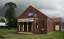 The name Dapto is said to be an Aboriginal word either from Dabpeto meaning "water plenty", or from tap-toe which described the way a lame Aboriginal elder walked.[2] The suburb was officially founded in 1834, when George Brown transferred the Ship Inn from Wollongong to Mullet Creek Farm, in an area now named in his honour as Brownsville. After an unsuccessful attempt at wheat growing in the 1850s, Dapto embraced the dairy industry. In 1887, the railway opened, and a butter factory was established. This began a transformation of Dapto and the town centre shifted south to where the new station was located. The Australian Smelting Company's works were established on Kanahooka Road and employed over 500 men. A railway, operated by the Illawarra Harbour and Land Corporation Limited, connected the smelter with the Government railway at Dapto.[3] By 1903 the Commissioner for Railways declared that Dapto was the most valuable station on the Illawarra line, its traffic being double that of Wollongong. The books John Brown of Brownsville (2012), Gooseberry and Hooka (2012) and Lake Illawarra: an ongoing history (2005) – all written by Joseph Davis and published by the Lake Illawarra Authority – contain much detail about Dapto's history.