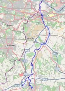 Map of the route using OpenStreetMap data - Highlighted map of Darent Valley Footpath