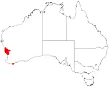 - ↑ Corrick, Margaret G.; Fuhrer, Bruce (2009). Wildflowers of southern Western Australia (3rd ed.). Kenthurst, N.S.W.: Rosenberg Pub. p. 120. ISBN 9781877058844.