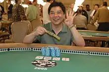 Chiu winning an event at the 2005 World Series of Poker