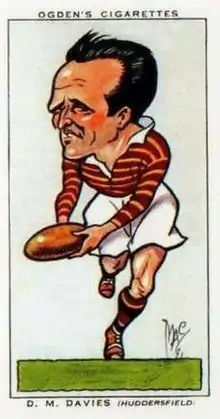 David "Dai" Morgan Davies (5 May 1902 – 22 February 1992) was a Welsh rugby union and professional rugby league footballer who played in the 1920s and 1930s. He played club level rugby union (RU) for Amman United and Neath and after changing codes to rugby league (RL) he played at international level for Wales and at club level for Broughton Rangers, Warrington, Huddersfield and Keighley, as a scrum-half.[2][4] Dai Davies was on the losing side in four Challenge Cup finals with three separate clubs; Warrington (1928 and 1933), Huddersfield (1935), and Keighley (1937).[5]