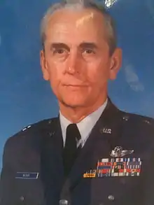 Awards he received include the Distinguished Service Medal, the Silver Star with oak leaf cluster, the Distinguished Flying Cross, the Bronze Star Medal with valor device and oak leaf cluster, the Purple Heart with two oak leaf clusters, the Air Medal with three silver oak leaf clusters and two bronze oak leaf clusters, and the Distinguished Unit Citation.