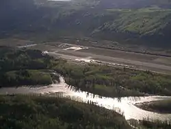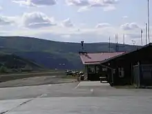 Dawson City Airport (IATA: YDA, ICAO: CYDA) is located 8 nautical miles (15 km; 9.2 mi) east of Dawson City, Yukon, Canada, in the Klondike River valley, and is operated by the Yukon government. It has a terminal building and a runway which was paved in May 2019.[4] The asphalt runway is 5,003 ft × 100 ft (1,525 m × 30 m) long and at an elevation of 1,215 ft (370 m). A number of studies have recommended moving the airport or realigning the runway as it is in a narrow mountain valley.