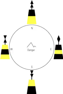 - ↑ "Cardinal Marks" (PDF). IALA. Archived from the original (PDF) on 2007-12-14.