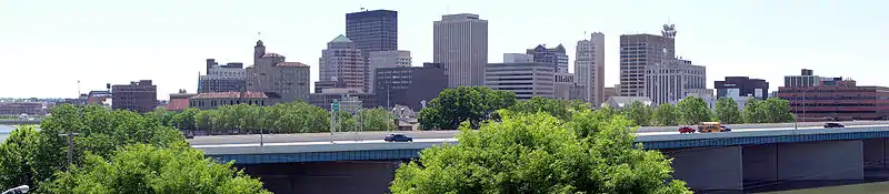 Like other cities across the country, Dayton was heavily involved in the war effort during World War II. Several locations around the city hosted the Dayton Project, a branch of the larger Manhattan Project, to develop polonium triggers used in early atomic bombs.[25] The war efforts led to a manufacturing boom throughout the city, including high demand for housing and other services. At one point, emergency housing was put into place due to a housing shortage in the region, much of which is still in use today.[26]