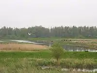 De Biesbosch National Park is one of the largest national parks in the Netherlands[2] and one of the last extensive areas of freshwater tidal wetlands in Northwestern Europe. The Biesbosch ('forest of sedges' or 'rushwoods') consists of a large network of rivers and smaller and larger creeks with islands. The vegetation is mostly willow forests, although wet grasslands and fields of reed are common as well.[3] The Biesbosch is an important wetland area for waterfowl and has a rich flora and fauna. It is especially important for migrating geese.