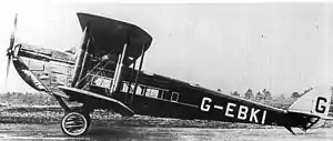 The DH.54 Highclere[1] was designed to Air Ministry specification 40/22 for a larger version of the very successful DH.34 and the two aircraft had much in common, both in construction and general layout. Compared with the DH.34, the Highclere's passenger complement increased from nine to twelve, its all-up weight by 56% and its wing area by 70%. They were both single-engined two-bay biplanes with fabric-covered wooden wings and with wooden-framed fuselages covered with thin plywood.[1]
