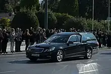 Following Constantine's death, it was announced a discussion would be held later that day at the Maximos Mansion to decide whether a state funeral is appropriate.[7] Following the discussion, it was decided that Constantine would not receive a state funeral, but would rather be buried as a private citizen.[5] It was also announced that his burial location would be at Tatoi Palace, where other past Greek royal family members have been buried.[5] The funeral location was decided to be the Metropolitan Cathedral of Athens on Monday 16 January.[17] Lina Mendoni, the Minister of Culture and Sports, was also called to be the government's representative at the funeral. The government also declined requests for a lying-in-state for Constantine's body. Many "right-wing politicians" reportedly were upset with the decision for neither a state funeral nor a lying-in-state, something which was requested by his family.[18]