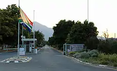 South African flag flying half-mast outside Drakenstein Correctional Centre where Mandela was imprisoned from 1988 to his release in 1990.