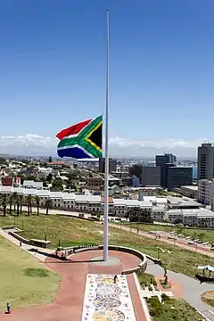 The South African government announced a period of 10 days of national mourning ending with the state funeral on 15 December 2013.[7] President Jacob Zuma ordered that all flags on government buildings be flown at half-mast for the duration of the mourning period.[8]