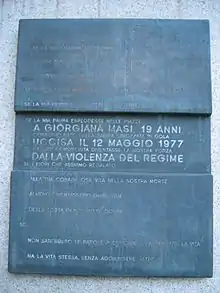 - 1 2 "L'omicidio di Giorgiana Masi, 40 anni fa". Il Post. May 12, 2017. Retrieved May 9, 2020.
