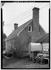 By the first decades of the nineteenth century the jailer's house was already sorely in need of repair, and consequently the county began to study the possibility of finding an alternative use for the property. At around the same time a state law had been passed requiring provision of separate facilities for debtors and felons. Thus, in 1824 a committee that was set up by the county court reminded that body that the law did not actually require the county to provide quarters for a jailer; furthermore, such an arrangement was highly unusual, if not unheard-of, in any other county in Virginia. Consequently, it was recommended that the house be reappropriated and reconfigured to serve as a debtors' prison, especially as it was thought that the proximity of the jailor's house to the jail posed a security risk. The committee held that little work needed to be done to convert the jail to its new purpose, saying "that iron bars to the windows of inch iron and oak Batton doors to be hung outside, is all that is necessary to be done to the said house, to answer the purposes intended, because it is believed that debtors have no inducement to brake [sic] prison, the Law authorizes them with little trouble to discharge themselves whenever they wish so to do.[2]" The conversion was finished quickly,[8] and the house served in its new capacity until 1849,[4] when imprisonment for debt was discontinued in Virginia. The old jail and wall were demolished by the county in 1909; the debtors' prison was turned over to the Drummondtown Branch of Preservation Virginia (formerly known as the Association for the Preservation of Virginia Antiquities). That organization undertook a partial renovation of the property in 1911, revisiting it for a fuller restoration in 1953. From 1911 until 1927 the building was used as a library; today it is a museum of local history,[2] and is furnished to represent a typical middle class home of the eighteenth century.[9] The Accomac debtors' prison was surveyed by the Historic American Buildings Survey between 1958[2] and 1961, when it was found to be in good condition; the formal report was placed on file in 1961.[7] The building is open by appointment.