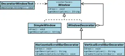 The decorator[4] design pattern is one of the twenty-three well-known design patterns; these describe how to solve recurring design problems and design flexible and reusable object-oriented software—that is, objects which are easier to implement, change, test, and reuse.