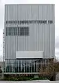 The vertical rods lining the outside of the building on all four sides are intended to be symbolic of the folds of a theater curtain. The rods comprising the facade are extruded anodized aluminum.[4]