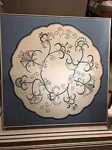 The Deerfield Society of Blue and White Needlework was founded in Deerfield, Massachusetts, in 1896 by Margaret C. Whiting and Ellen Miller. They formed the society in 1896 as a way to help residents boost the town's economy by reviving American needlework from the 1700s.[1] It was inspired by the crewel embroidery of 18th-century women who had lived in the Deerfield, Massachusetts, area. Members of the Blue and White Society initially used the patterns and stitches from these earlier works, but because these new embroideries were not meant to replicate the earlier works, the embroidery soon deviated from the original versions with new patterns and stitches, and even the use of linen, rather than wool, thread.[2]:73 The society disbanded in 1926 for several reasons. Ellen Miller was in declining health; the trained stitchers were getting old and could not continue; Margaret C. Whiting's sight was fading; and, the design and quality of commercially produced items was increasing.[3]:35