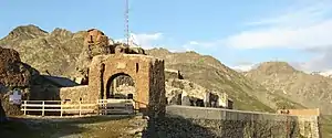 By late April the Redoute Ruinée was garrisoned by a platoon of forty-six esploratori-arditi of the 4th Regiment under Antonio Rossitto.[1][3] The chasseurs alpins attacked the fort on the nights of 27/8 and 28/9 April and there was serious fighting. On the morning of the 29 April, De Felice ordered all his positions on French soil, include the Redoute Ruinée, be abandoned.[1] That day the French occupied the fort. It was, along with the Roc de Belleface, also occupied that day, the last pieces of French soil under Italian occupation.[5]
