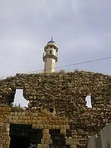 Sa'd el-Omar is credited with the construction of the village fort's high inner walls, which at the time had 12 towers. Zahir is credited with the construction of the outer walls, while Ali al-Zahir had two towers built off of the eastern and western sides of the fort. Both of the latter towers were separated from the fortress and were meant to serve as additional protection in the event of a siege.[14] The Zaydani mosque of Deir Hanna, before its destruction in 1776, had been the "most famous of all the Zaydani's buildings in the Galilee", according to historian Moshe Sharon.[15] Local tradition claims that the mosque was built on top of an older Crusader-era church and that Jezzar Pasha had been so impressed by Sa'd's mosque, that he copied its design for his namesake mosque in Acre.[15]