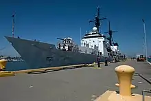 A second Hamilton-class cutter, the USCGC Dallas (WHEC-716), was turned over to the Philippine Navy on 22 May 2012[15] with ceremonies held at the Federal Law Enforcement Training Center Pier Papa in North Charleston, South Carolina.[16] The ship was named BRP Ramon Alcaraz (PF-16) in Philippine Navy service. Like its sister ship, it was retrofitted and modified in the US, replacing systems removed by the USCG.[17] It was expected to arrive in the Philippines by February 2013.[18][19] However, further training and unspecified upgrades on the ship pushed the arrival of the BRP Ramon Alcaraz to August 2013.[20] The ship's arrival ceremony was held at Subic Harbor on August 6, 2013, led by President Aquino.[21] It was commissioned on Nov. 22, 2013.[22]