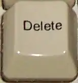 The key appears on English-language IBM-compatible PC keyboards labeled as Delete or Del, sometimes accompanied by a crossed-out right-arrow symbol.[1][2] A dedicated symbol for "delete" exists as U+2326 ⌦ but its use as a keyboard label is not universal. However, sometimes the key labelled Delete performs the Backspace function instead, for example on some Apple keyboards.[3]
