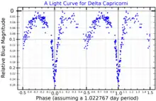 - 1 2 3 4 Lloyd, C.; Wonnacott, D. (January 1994), "Is the ROSAT Wide Field Camera EUV source and AM eclipsing binary, Delta Capricorni, also a Delta Scuti variable?", Monthly Notices of the Royal Astronomical Society, 266: L13–L16, Bibcode:1994MNRAS.266L..13L, doi:10.1093/mnras/266.1.l13
