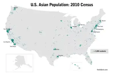 {{cite web}}:|last=has generic name (help) - ↑ "Total Population: Asian Alone or in combination with one or more other races". 2010 Census Summary File 2. United States Census Bureau. Archived from the original on 14 February 2020. Retrieved 4 May 2019.