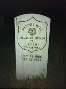 Dennis Bell (December 28, 1866 – September 25, 1953) was a Buffalo Soldier in the United States Army and a recipient of America's highest military decoration—the Medal of Honor—for his actions in the Spanish–American War. Bell and three of his fellow Buffalo Soldiers were the last black servicemen to be presented the Medal of Honor for more than half a century.