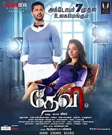 Devi is a 2016 Indian trilingual comedy horror film co-written and directed by Vijay.[2] It features Tamannaah Bhatia in the title role with Prabhu Deva and Sonu Sood in the lead roles whilst RJ Balaji, Saptagiri, Rajiv Thakur and Murali Sharma in supporting roles.[3][4] In addition to Tamil, the film was also simultaneously shot in Telugu and Hindi titled Abhinetri (transl. Actress) and Tutak Tutak Tutiya, respectively.