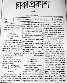 Dhaka (Dacca) Prakash (Bengali: ঢাকা প্রকাশ) was the first Bengali language newspaper published in Dhaka, capital of East Bengal (present-day Bangladesh). First published in 1861, the newspaper remained in publication for about a century. No other newspaper in the East Bengal remained active for such a long time.[1]