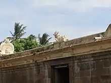 Well-preserved Chola sculptures and carved pillar bases are present in and around both sanctums.[1]