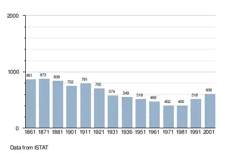 - ↑ "Popolazione Residente al 1° Gennaio 2018". Italian National Institute of Statistics. Retrieved 16 March 2019.