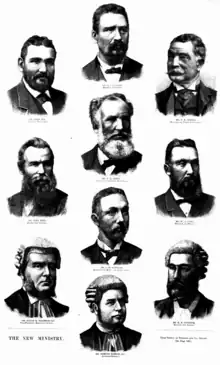 The third Dibbs ministry, the 27th ministry of the Colony of New South Wales, was led by Sir George Dibbs, leader of the Protectionist Party, following the 1891 New South Wales election, which saw the Labour Party win seats in the New South Wales Legislative Assembly and the balance of power. With no party having a majority, Sir Henry Parkes held on as Premier until October 1891 when he lost a vote in the Legislative Assembly, causing Parkes to resign as Premier and leader of the Free Trade Party.[1] Dibbs formed the ministry on 23 October 1891, with Labour support, and comprised 10 ministers.