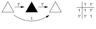 Another example is to construct an anti-mirror reflection (m') from a mirror reflection (m) and an anti-identity operation (1') executed in either order.
