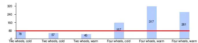(all tests performed on the same car)