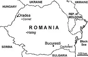 The dinosaurs of Romania are mostly Cretaceous in age, though a series of footprints referred to Parabrontopodus mcintoshi was described from the Early Jurassic of Anina, southwestern Romania.[1] Lowermost Cretaceous dinosaurs come from a bauxite mine in the Bihor County (northwest Romania) that has yielded thousands of disarticulated bones. Uppermost Cretaceous dinosaurs have been known from the Hațeg Basin (south Transylvania) since the end of the 19th century, mostly as bone concentrations (fossiliferous pockets); more recently, nests with dinosaur eggs, including hatchlings, have been found in Hațeg. Although separated by a gap of approximately 60 million years, the two dinosaur faunas from Romania share some common features: predominance of ornithopods, absence of large theropods (although the Maastrichtian Hațeg assemblage has several small theropods), and, in general, the small size of the individuals (see also insular dwarfism).