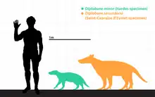 Diplobune (Ancient Greek: διπλοῦς (double) + βουνός (hill) meaning "double hill") is an extinct genus of Paleogene artiodactyls belonging to the endemic western European family Anoplotheriidae that lived from the late Eocene to the early Oligocene. The genus was first erected as a subgenus of Dichobune by Ludwig Rütimeyer in 1862 because he thought that it was a transitional form between "Anoplotherium" secundaria, previously erected by Georges Cuvier in 1822, and Dichobune. He based the genus etymology off of the two-pointed pillarlike shapes of the lower molars, which had since been a diagnosis of it. However, in 1870, Diplobune was promoted to genus rank by Oscar Fraas, who recognized that Diplobune was a distinct genus related to Anoplotherium and not Dichobune. After several revisions of the anoplotheriids, there are today four known species of which D. minor is the type species.