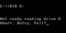 Screenshot showing the "Abort, Retry, Fail?" prompt on MS-DOS.