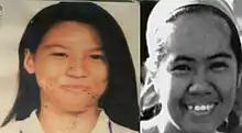 On June 26, 2006, Cadapan and Empeño, both alumni of the University of the Philippines Diliman, were abducted by military men in Hagonoy, Bulacan, during the tenure of President Gloria Macapagal Arroyo,[4] and were accused of being members of the Communist Party of the Philippines. This incident took place at the time of a fierce conflict in Central Luzon between the government and the communist New People's Army.[5] According to the official investigation, eyewitness Raymond Manalo stated that General Jovito Palparan tortured Sherlyn by hitting her mouth and punching her breasts and stomach area until they bled. Palparan also slammed wooden planks against the victim so that Sherlyn would admit to being a communist, while Sherlyn kept on saying that she wanted to go home to her parents. Manalo also noted that he saw the military stealing from nearby villagers, burning dead bodies using gasoline, and shooting a man who was riding a carabao due to farm work. Manalo's account also noted that in April 2007, he saw Sherlyn lying naked on a chair that had fallen on the floor, her wrists tied together and one leg tied down, while being hit by wooden planks, electrocuted, and afterwards being half-drowned. The military also played with her body, poking wooden objects inside Sherlyn's vagina, after finding out that Sherlyn was going to write a letter to somebody. Sherlyn, due to intense torture, blurted out that the letter was Karen's idea. The military then dragged Karen out from her cell, stripped her naked, tied her wrists and ankles, then beat her, subjected her to water torture, burned her with cigarettes, and raped her with pieces of wood. Manalo afterwards washed the two women's clothes, including their blood-drenched panties. He also noted that the bucket containing urine from the two women was filled with 'chunks of blood'.[6][7]