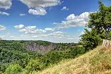 A gorge in the area is named after the female warrior Šárka, who, according to Ancient Bohemian Legends, threw herself to her death from its cliffs after betraying her lover Ctirad during the Maidens' War.[2]