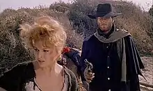 Corbucci and Vivarelli's outline was then revised by Franco Rossetti.[2] By the time filming began, Corbucci was directing from a "scaletta [...] like a synopsis, but more detailed, [yet] still not a full screenplay".[12] Further screenplay contributions and revisions were made throughout production, namely by José Gutiérrez Maesso and Fernando Di Leo (who was not credited for his work on the script) and especially by Bruno Corbucci.[2] Actor Mark Damon has also claimed to have collaborated with Corbucci on the story prior to the film's production.[8] Italian prints credit the Corbucci brothers with "story, screenplay & dialogue", while Rossetti, Maesso and Vivarelli are credited as "screenplay collaborators". English prints do not list Maesso, and credit Geoffrey Copleston for the English-language script.[13]
