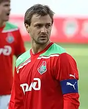 Dmitri Yevgenyevich Sychev[lower-alpha 1] (Russian: Дми́трий Евге́ньевич Сычёв, tr. Dmitriy Yevgen’yevich Sychyov, IPA: [ˈdmʲitrʲɪj jɪvˈɡʲenʲjɪvʲɪtɕ sɨˈtɕɵf] ⓘ; born 26 October 1983) is a Russian former professional footballer who played as a forward or as a midfielder. He was hailed by the international press as "The Russian Michael Owen", because of his pace, and was dubbed "the most sensational young Russian forward since Vladimir Beschastnykh".[1] He was well known for his blinding pace and agility.