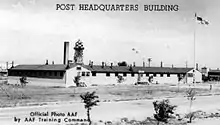The principal construction of the facility consisted of building a cantonment, airdrome, roads, and facilities. The arrangement was standard rectangular, with building exteriors consisting of wood sheeting covered with 15-pound felt and asbestos-siding shingles. Housing was prepared for close to 4,000 men, while the hospital had a capacity of 177 beds. Warehousing was built to provide 71,186 square feet of space, and the airdrome could accommodate 165 aircraft.
