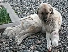An emaciated Kangal with cancer in the left foreleg