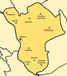 Dolovo (Serbian Cyrillic: Долово) is a village in Serbia. It is situated in the Pančevo municipality, in the South Banat District, Vojvodina province. The village has a Serb ethnic majority and its population is 5,569 (2022 census). The place name means location of troughs.