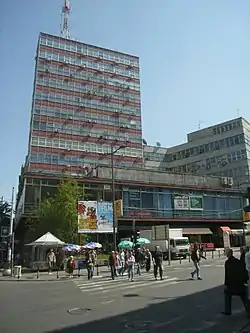 At the corner of the Dečanska and Makedonska streets, where the youth center is today, was the location of the kafana "Ginić". One of the most popular kafanas in Belgrade in its heyday, it was a gathering point of the journalists and reporters from the Politika daily, which was located nearby. The satirical magazine Ošišani Jež ("shaved hedgehog") was founded in the venue.[2] Next to "Ginić" was another kafana, "Prozor". The ground floor houses were demolished to make way for the much taller Youth Center building.[3]
